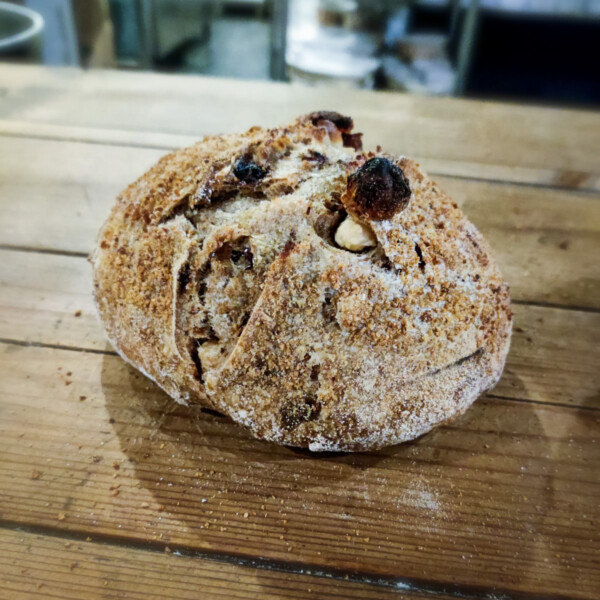 Pain aux noisettes, chapelure et raisins